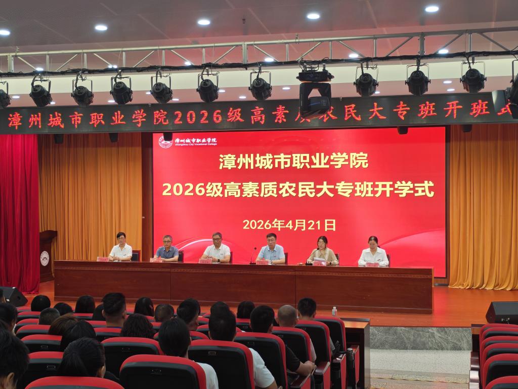 2026年4月21日上午9:30,漳州城市职业学院2026级高素质农民专科学历教育园艺技术专业开班式在怀仁楼丹霞厅隆重举行。生态景观学院党总支书记林艺松、继续教育中心副主任辛晖阳、生态景观学院副院长罗水木、教学班主任燕一波、林新萍出席仪式。开班仪式由林勤老师主持。