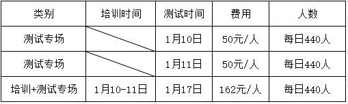 (2)培训+测试专场收费:培训费 112 元/人,测试费 50 元/人,合计 162 元/人。