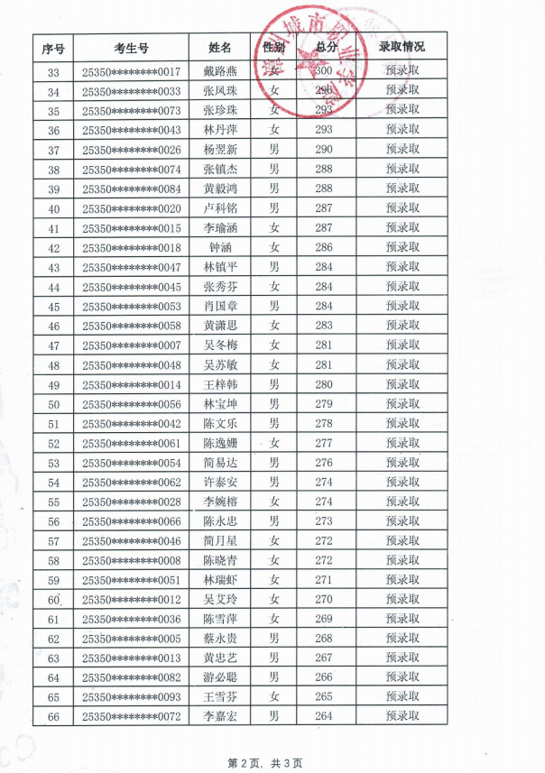 公示无异议后,我院将预录取名单上报福建省教育考试院审核,并经福建省教育考试院按规定程序录取,录取名单将在学院网站公布。